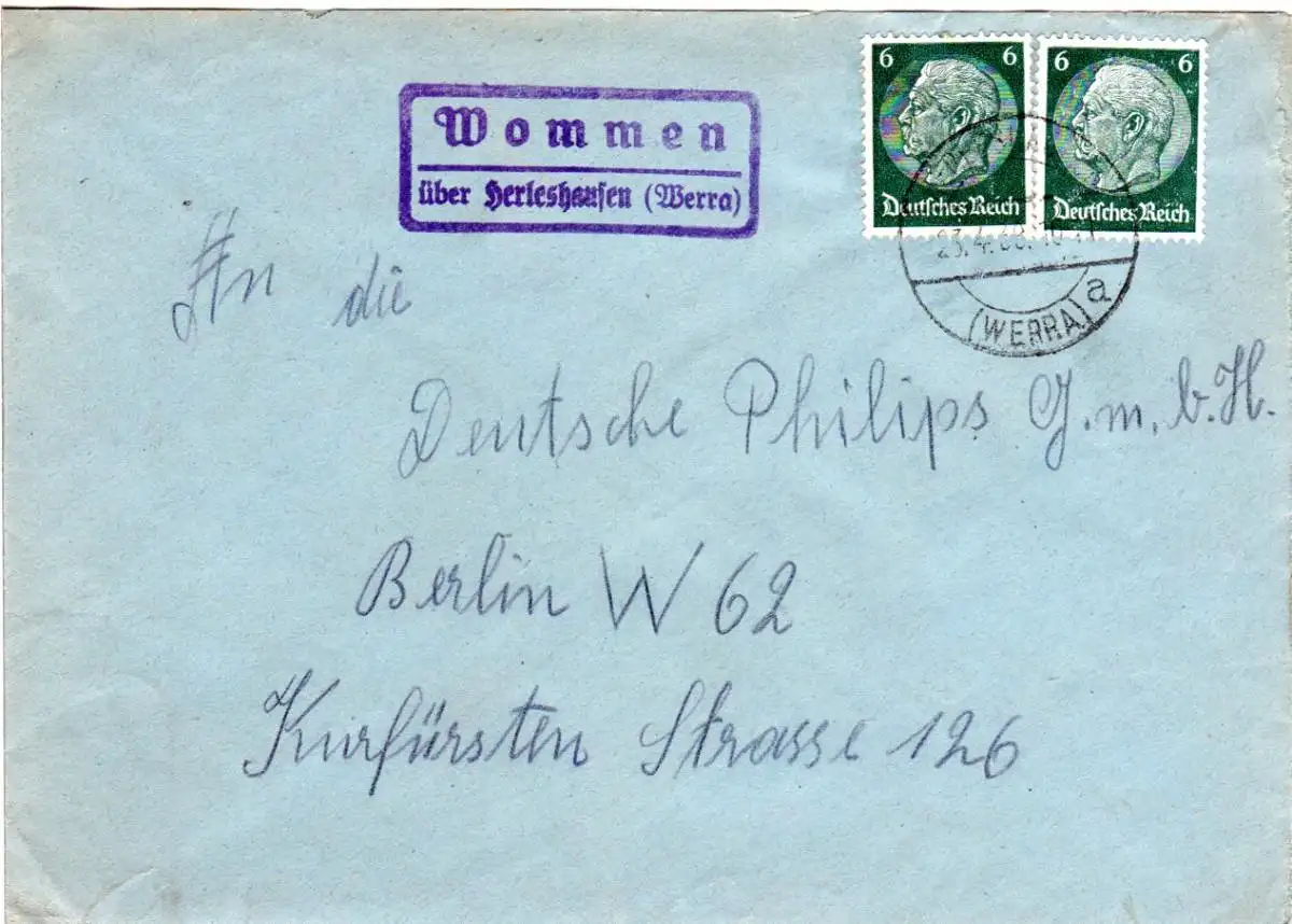 DR 1939, Landpost Stpl. WOMMEN über Herleshausen auf Brief m. 2x6 Pf.