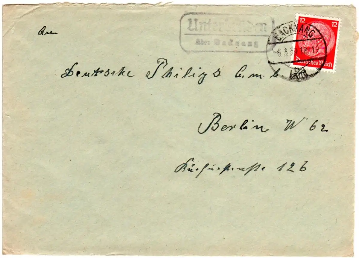 DR 1939, Landpoststpl. UNTERBRÜDEN über Backnang auf Brief m. 12 Pf