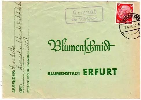 DR 1941, Landpost Stpl. Kemnat über Dinkelscherben auf Brief m. 12 Pfg.