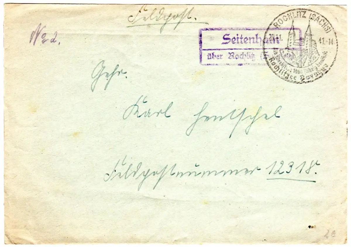 DR 1941, Landpost Stpl. SEITENHAIN über Rochlitz auf Feldpost-Brief