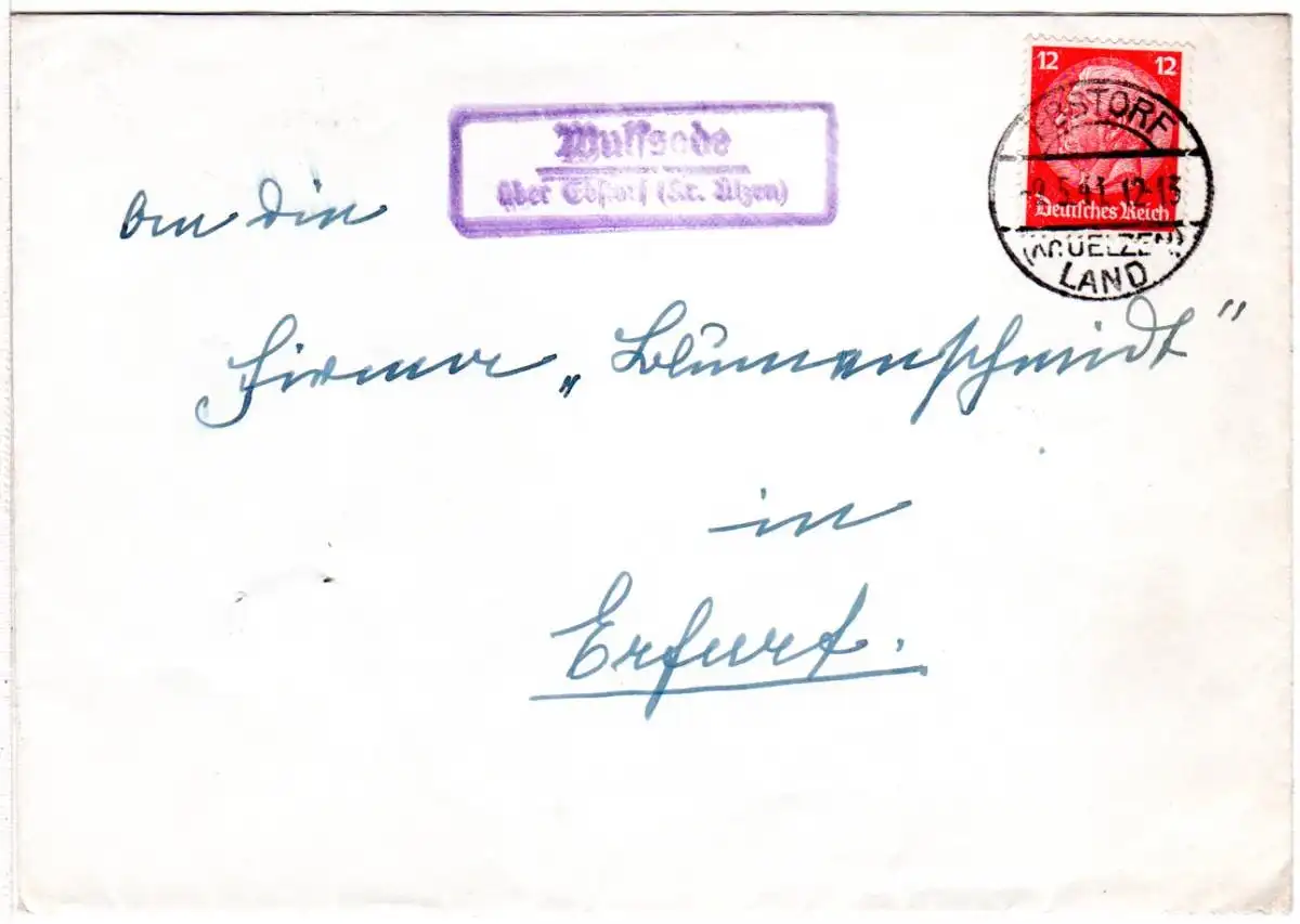DR 1941, Landpost Stpl. WULFSODE über Ebstorf auf Brief m. 12 Pf.