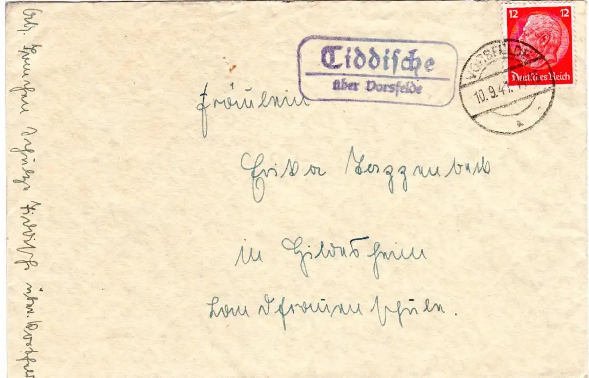 DR 1941, Landpoststpl. TIDDISCHE über Vorsfelde auf Brief m. 12 Pf.