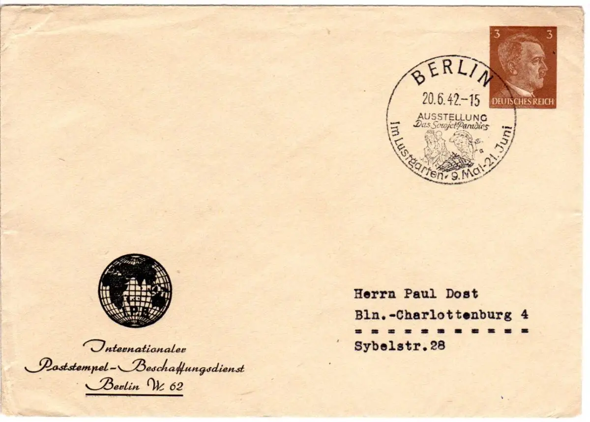 DR 1942, 3 Pf. Privat Ganzsache Brief m. Berlin Sovjet Paradies Sonderstempel