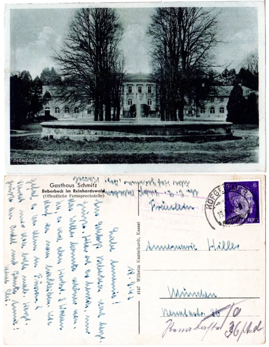 DR 1942, Landpost Stpl. BEBERBECK über Hofgeismar auf sw-AK m. 6 Pf.