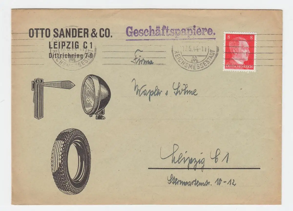 DR 1944, 8 Pf. auf illustriertem Reklame Geschäfts Brief v. Leipzig m. Messestpl