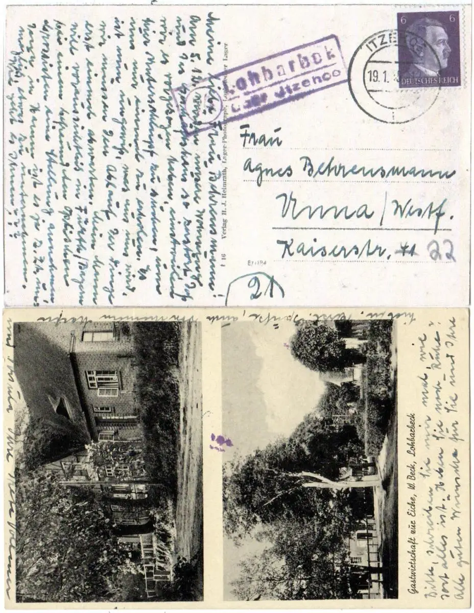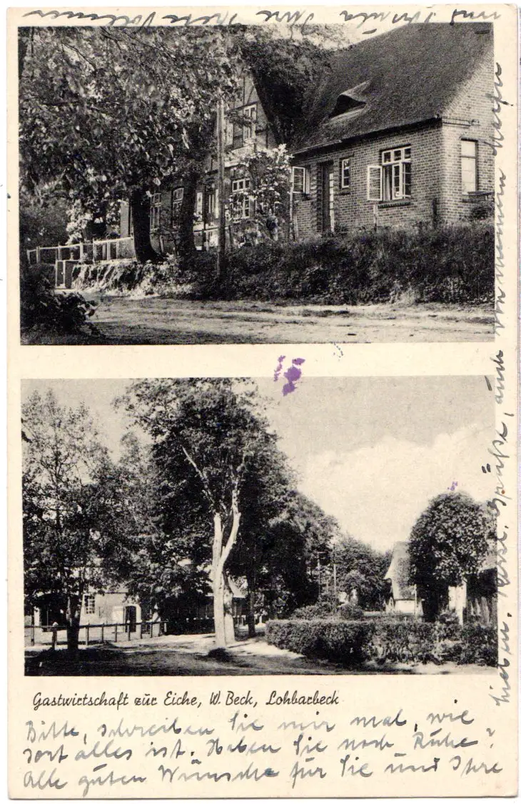 DR 1945, Landpost Stpl. LOHBARBEK über Itzehoe auf Gasthaus sw-AK m. 6 Pf.