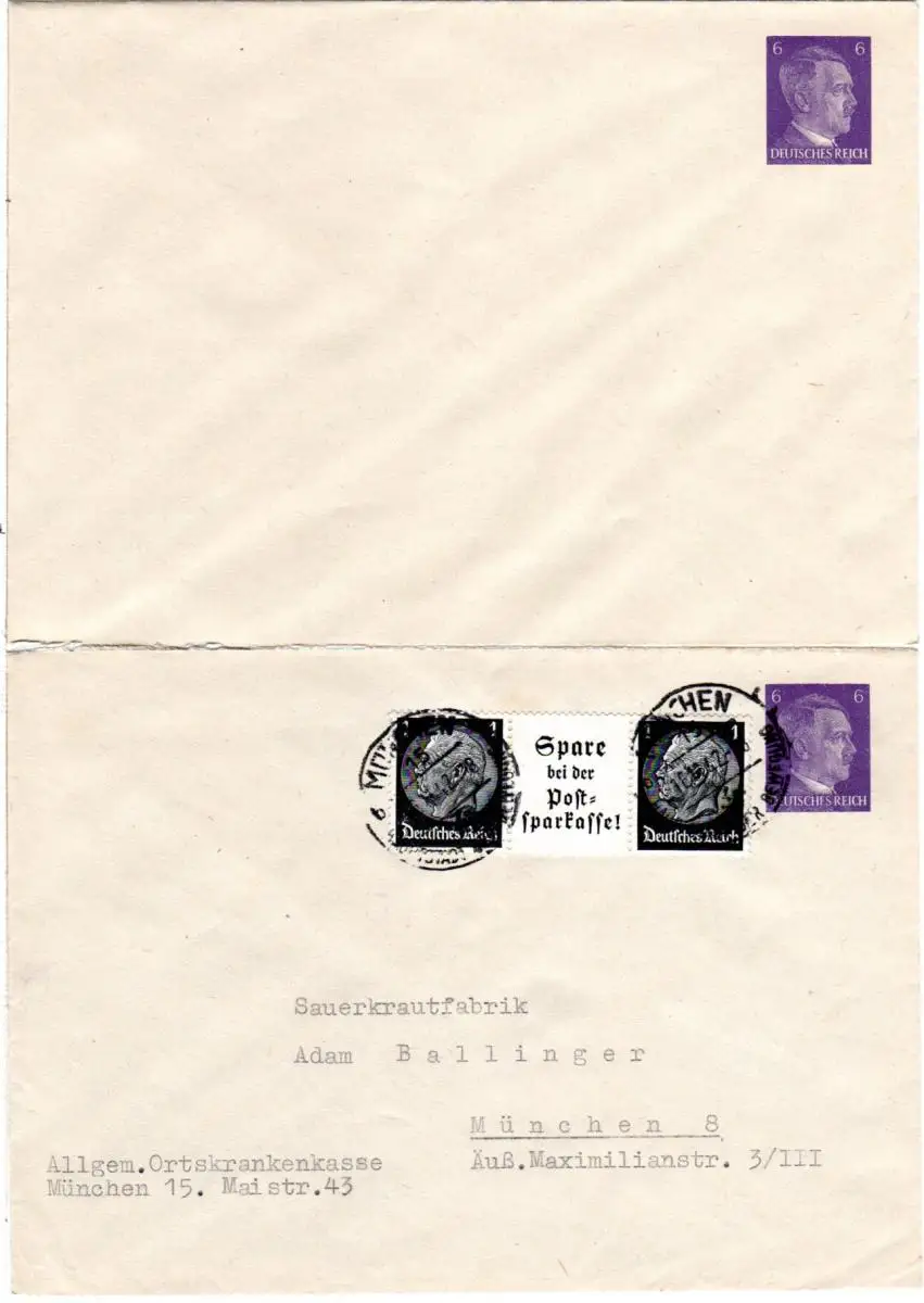 2 gebr. (m. Zusatzfr. Zusammendruck 1 Pf. m. Zwischenfeld Spare bei der Postsparkasse) / ungebr. Privatganzsachenumschläge (Strahlendorff/Mette Kat. PU 150-A1/02)