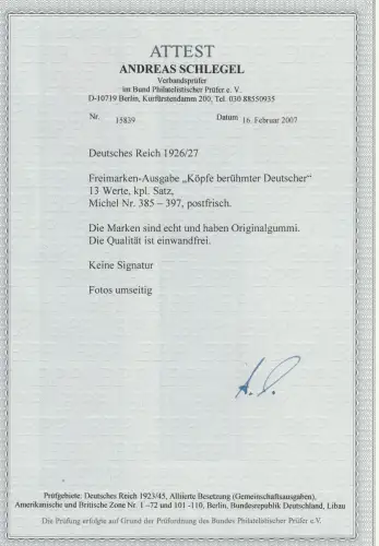 DR: "Berühmte Deutsche", postfrisch (MNH), Attest Schlegel