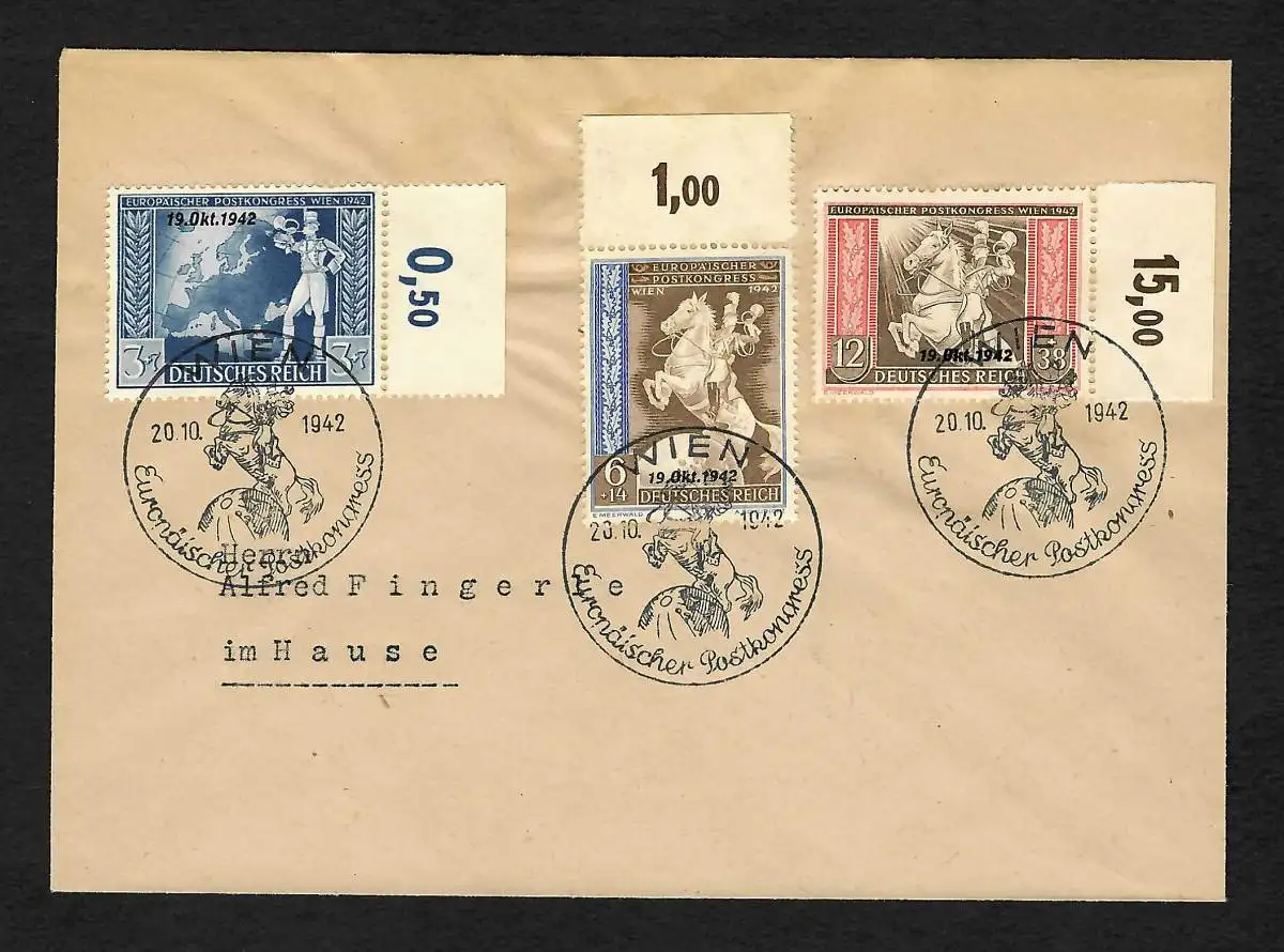 DR: Europäischer Postkongress, Wien 1942, kompl. Satz mit Sonderstempel