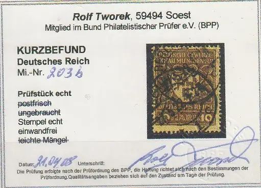 DR/Infla: Nr. 203 in b-Farbe, gestempelt, Befund Tworek