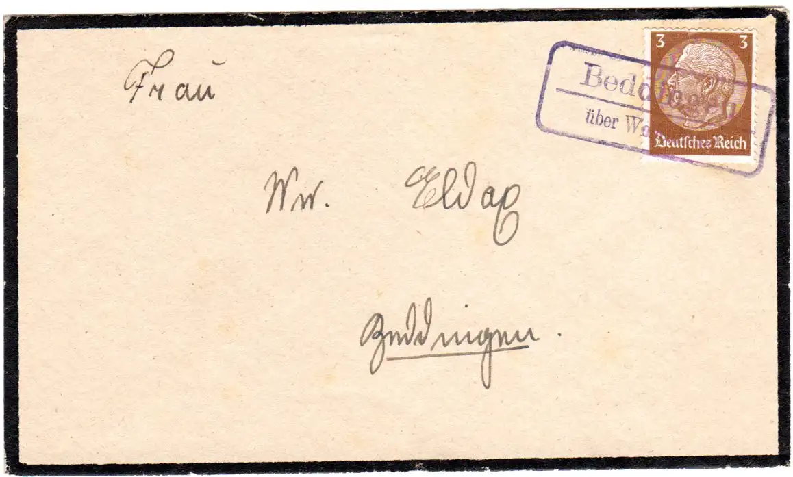 DR, Landpost Stpl. BEDDINGEN über Wolfenbüttel als Entwerter auf Brief m. 3 Pf.