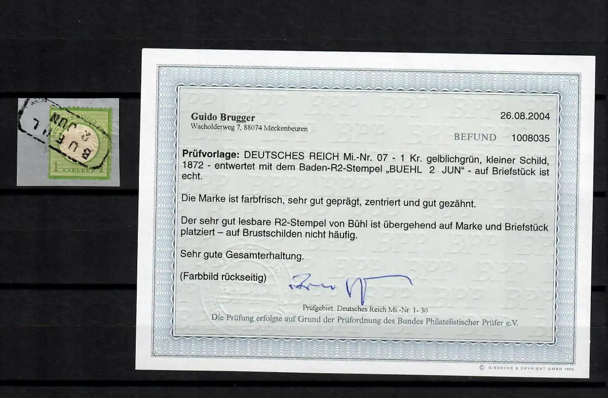 DR: MiNr. 07, gestempelt Bühl, BPP Befund