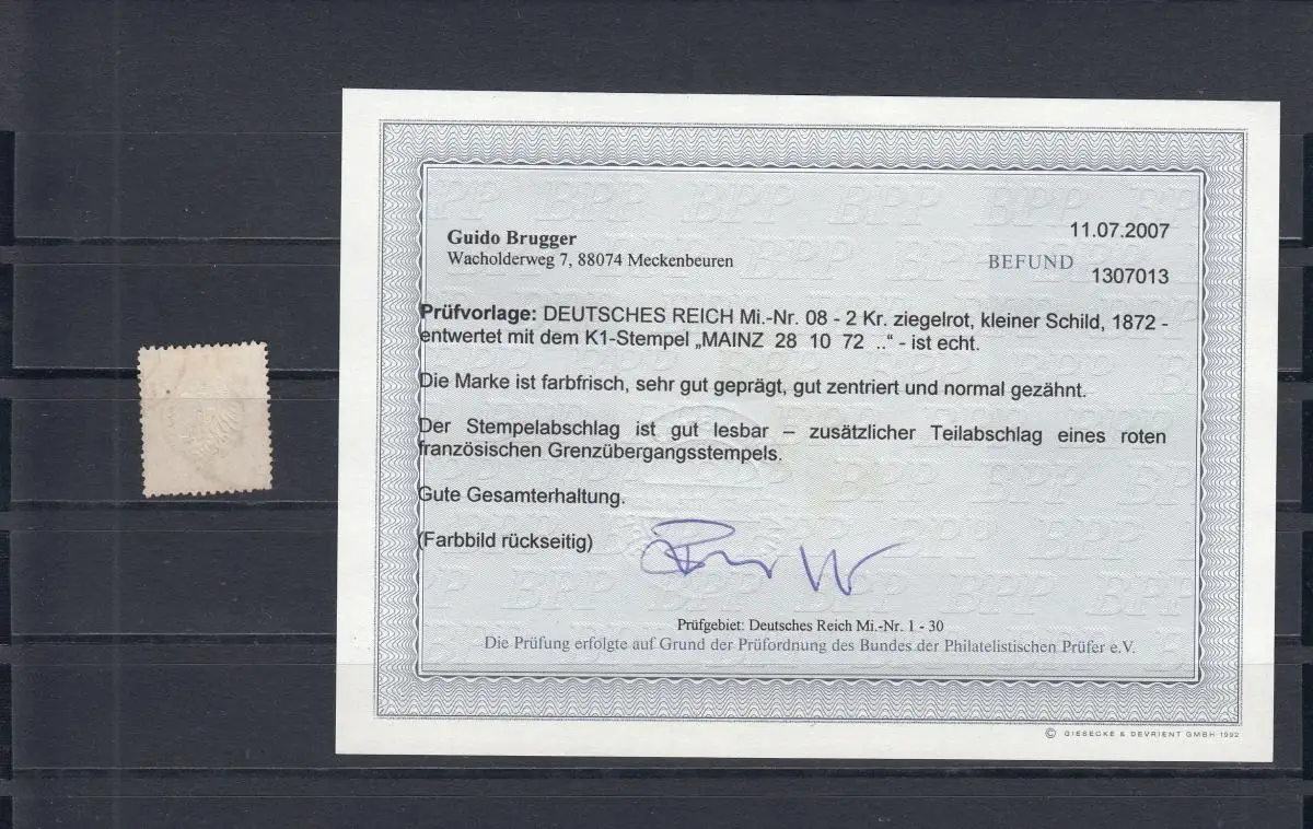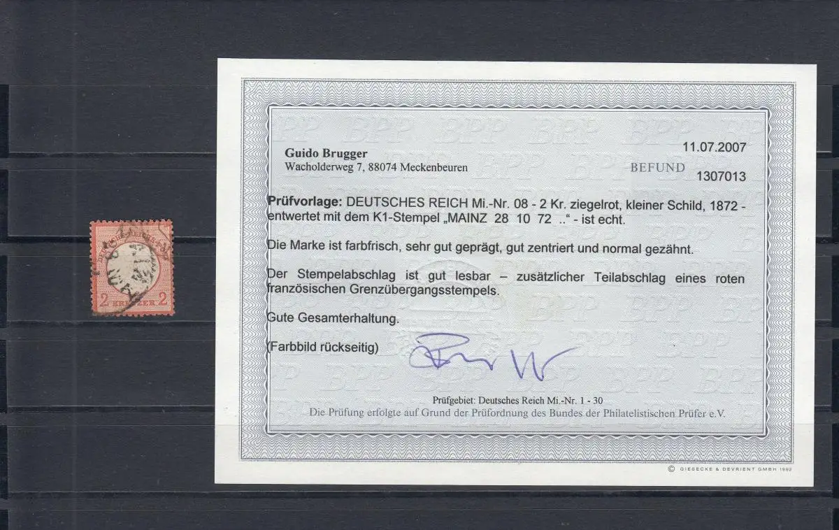 DR: MiNr. 08, gestempelt Mainz, BPP Befund