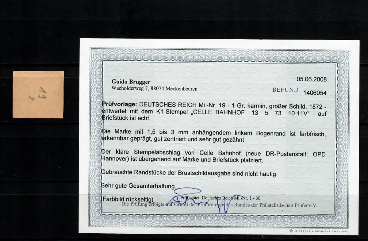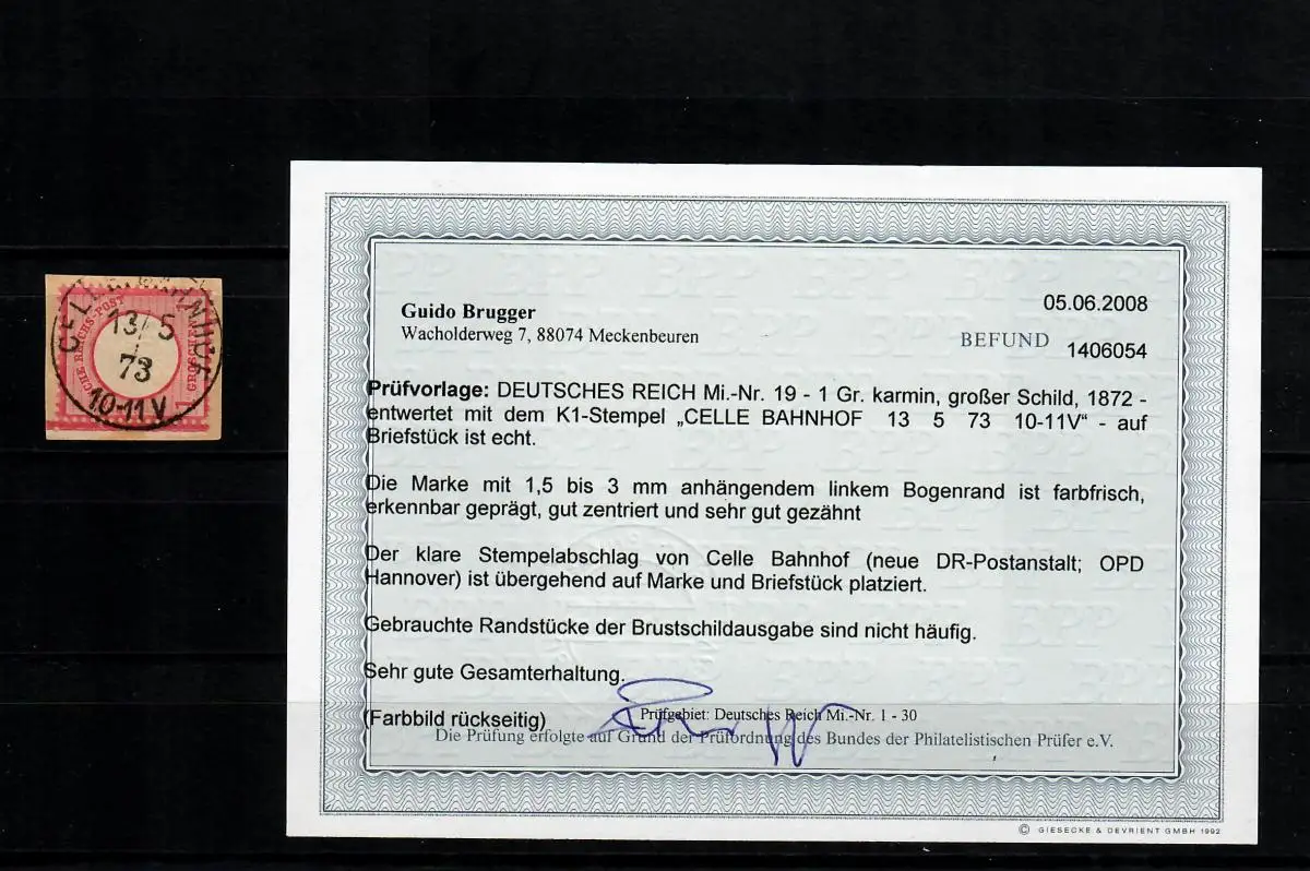 DR: MiNr. 19, gestempelt Coeln-Bahnhof, BPP Befund