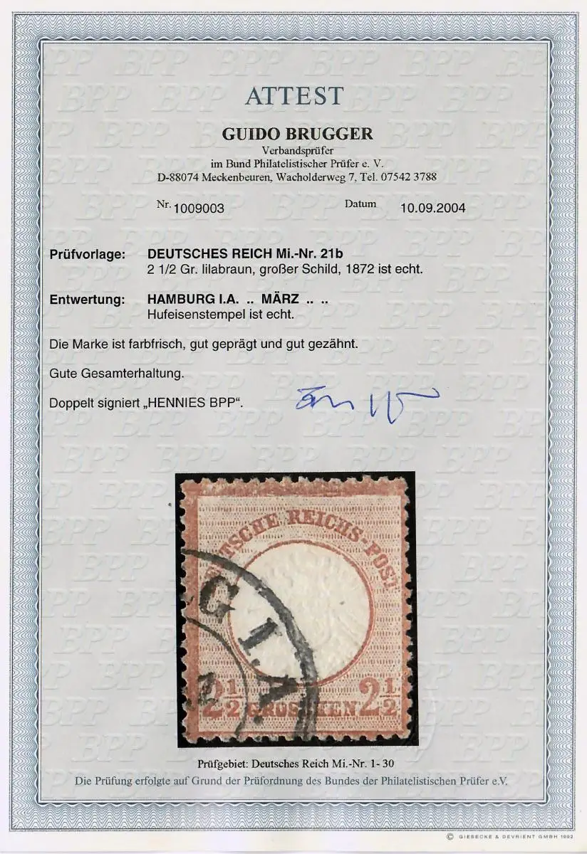 DR MiNr. 21b, gestempelt Hamburg mit Foto Attest BPP