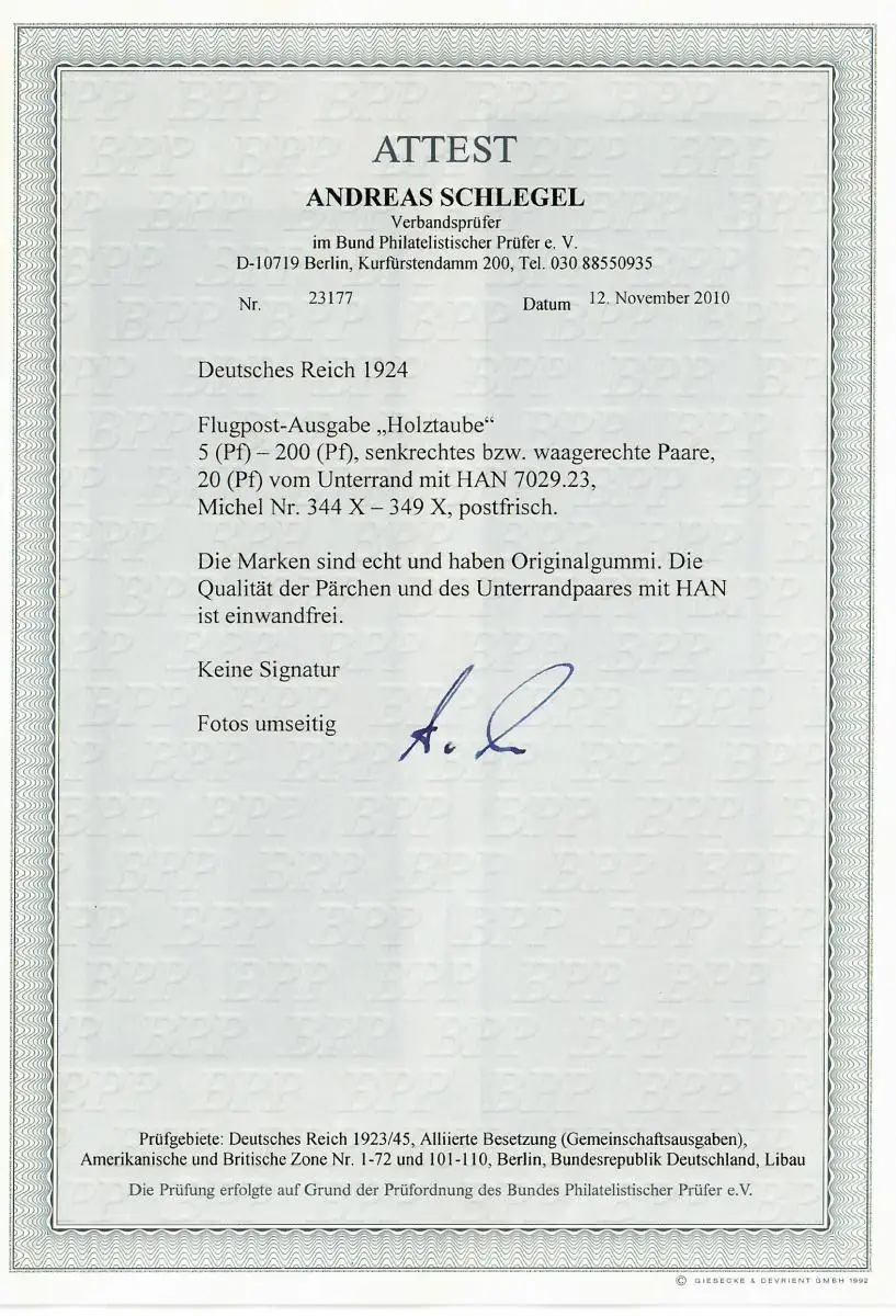DR: MiNr. 347 - Deutsche Flugpost - Eckrand E4, postfrisch, **, BPP Attest