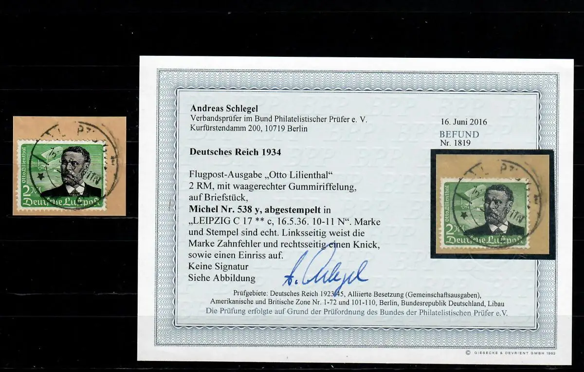 DR MiNr. 538 y, gestempelt Leipzig, BPP Befund