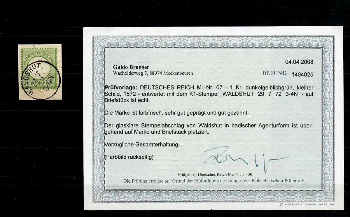 DR: MiNr. 7, gestempelt Waldshut auf Briefstück, BPP Befund