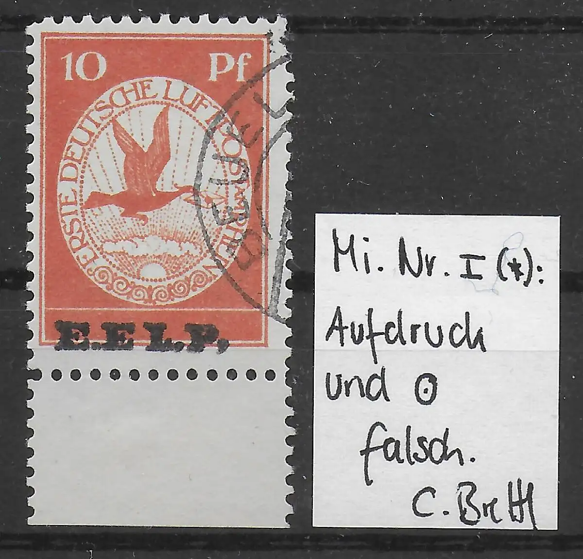 DR: MiNr. I, Aufdruck und Stempel falsch, BPP geprüft