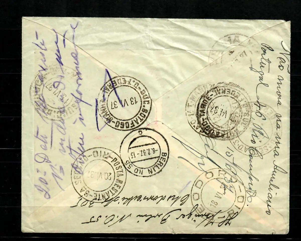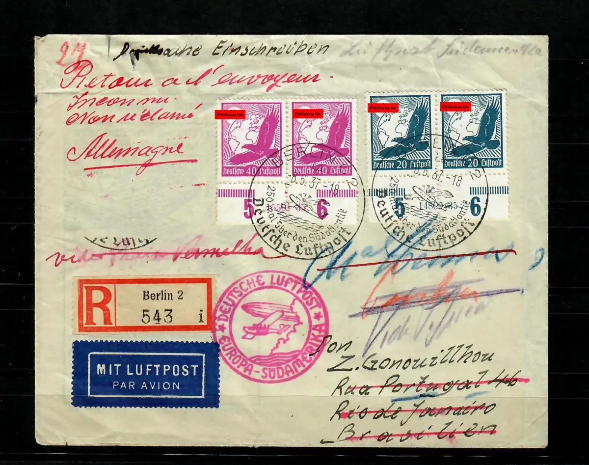 DR: R-Luftpostbrief, 1937: Zeppelin Südamerika nach Rio de Janeiro, Mi.532/4 HAN