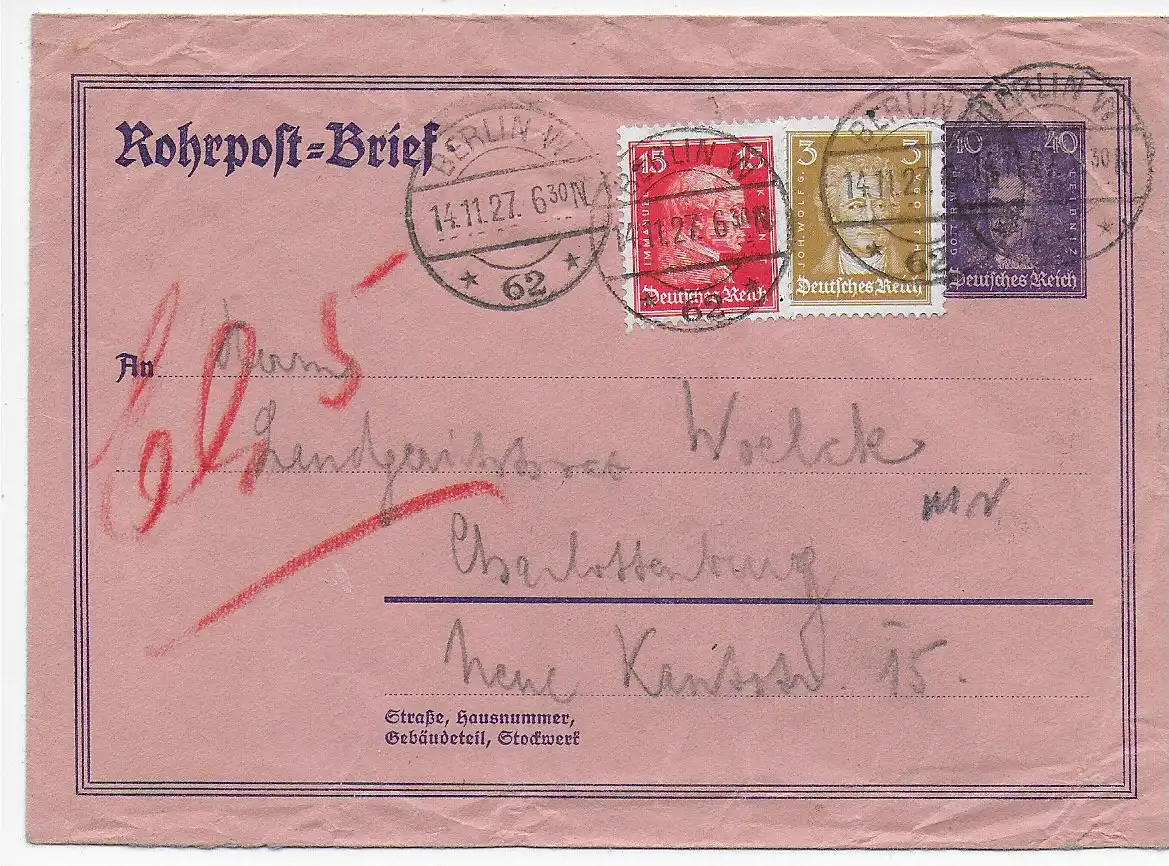 DR: Rohrpost-Brief Berlin 1927 nach Charlottenburg