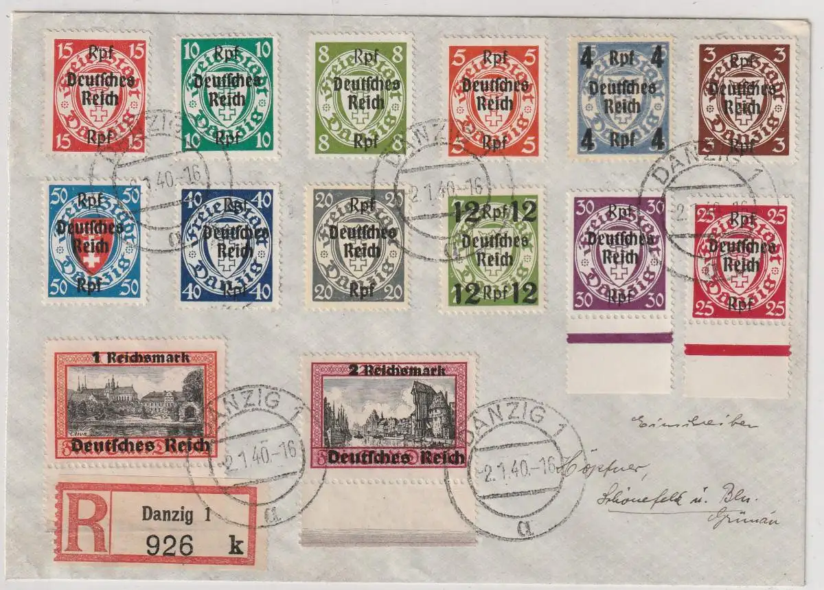 .DR: Satzbrief "Danzig-Aufdruck" als Einschreiben gelaufen, Pracht