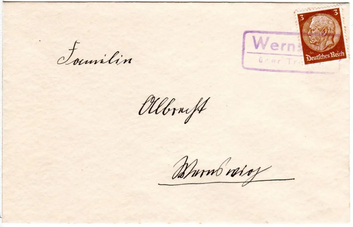DR, WERNSDORF über Trysa, Landpost Stpl. als Entwerter (!) auf Ortsrief m. 3 Pf.