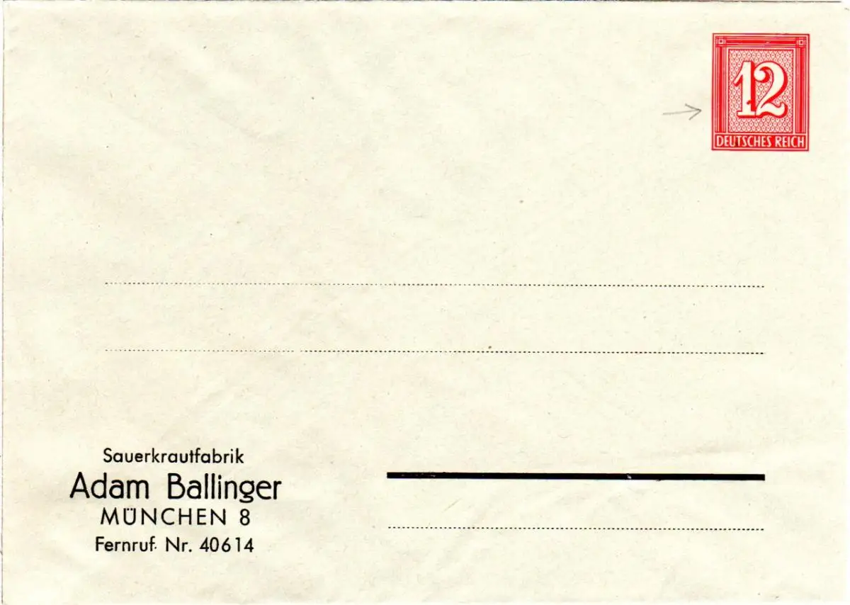 Ungebr. Privatganzsachenumschlag (Strahlendorff/Mette Kat. PU 156-B6/01) Sauerkrautfabrik Adam Ballinger München 8.