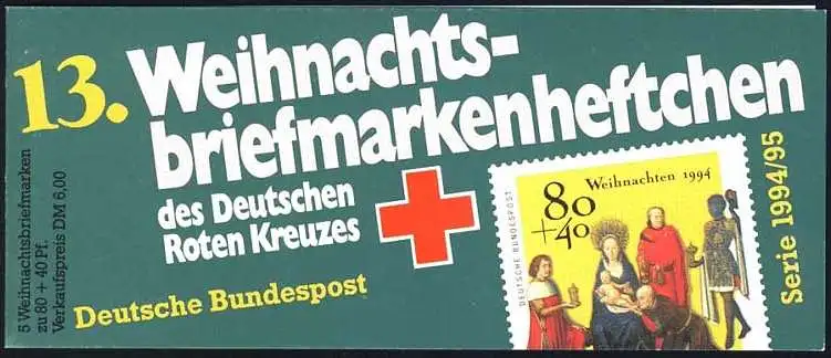 DRK/Weihnachten 1994/95 Anbetung der Könige 80 Pf, 5x1770 13.MH **