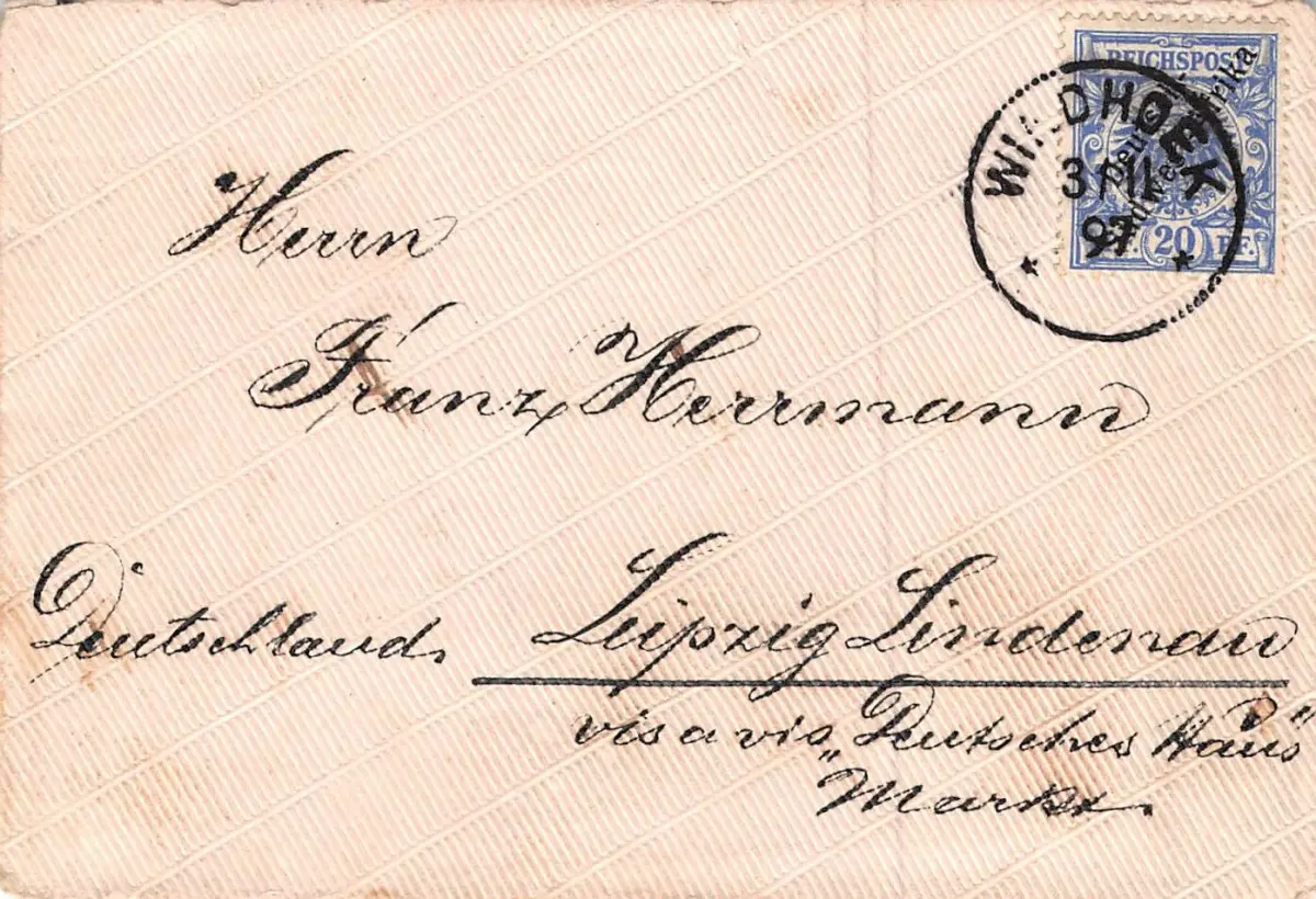 DSWA Deutsch-Südwest-Afrika Brief 20 Pfennig Adler-Ausgabe WINDHOEK 1897