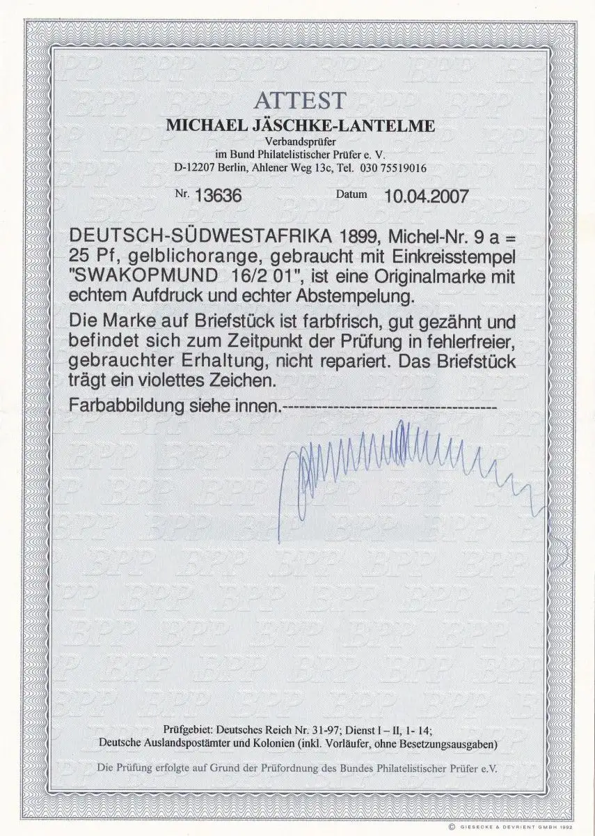 Ein Angebot in Briefmarken Dt. Kolonien Dt.-Südwestafrika - 553 weitere Angebote in dieser Kategorie