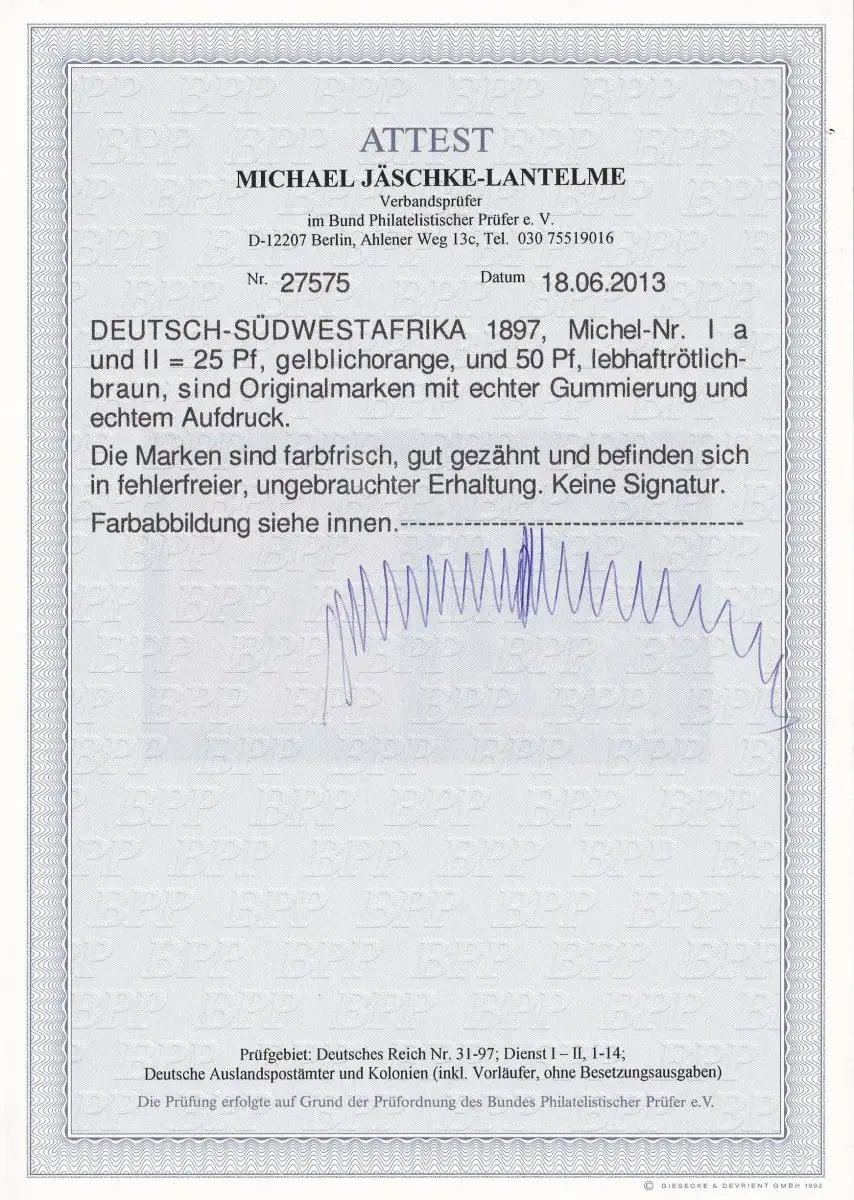 DSWA: MiNr. Ia und II, *, BPP Befund