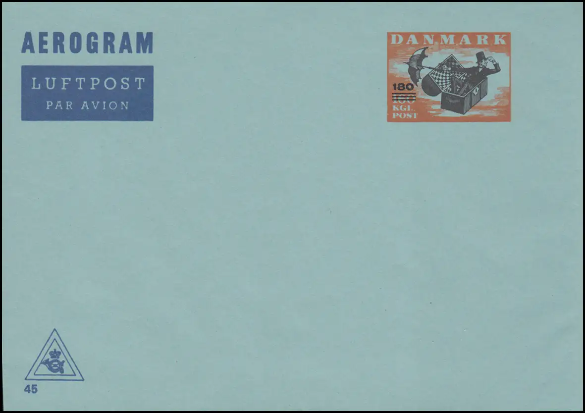Dänemark Aerogramm LF 29 Der fliegende Koffer 180 auf 160 Öre, Kz. 45, **
