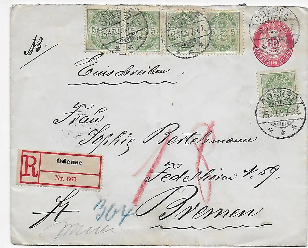 Dänemark: Einschreiben Odense nach Bremen, 1905