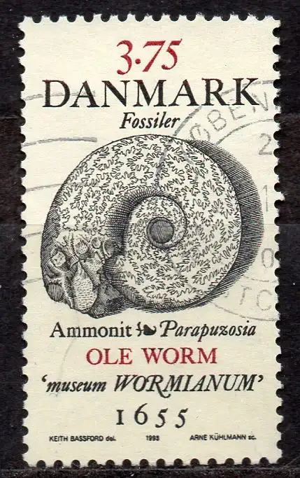 Dänemark, Mi-Nr. 1195 gest., Historische Fossilienfunde
