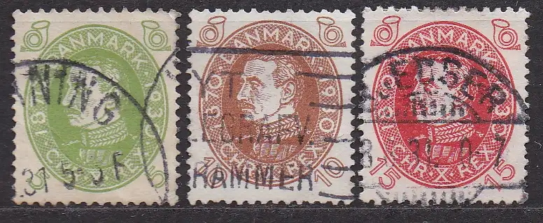 Dänemark, Mi-Nr. 185, 188 + 189 gest., 60. Geburtstag von König Christian X.