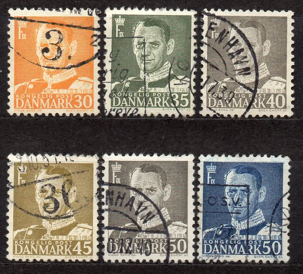 Dänemark, Mi-Nr. 308 III, 309, 311, 312, 313 + 314 gest., König Frederik IX.