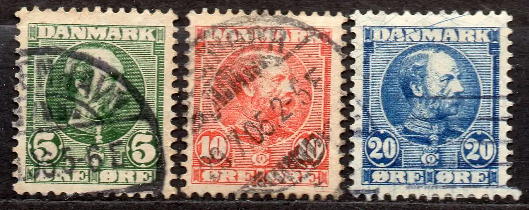 Dänemark, Mi-Nr. 47, 48 + 49 gest., König Christian IX.