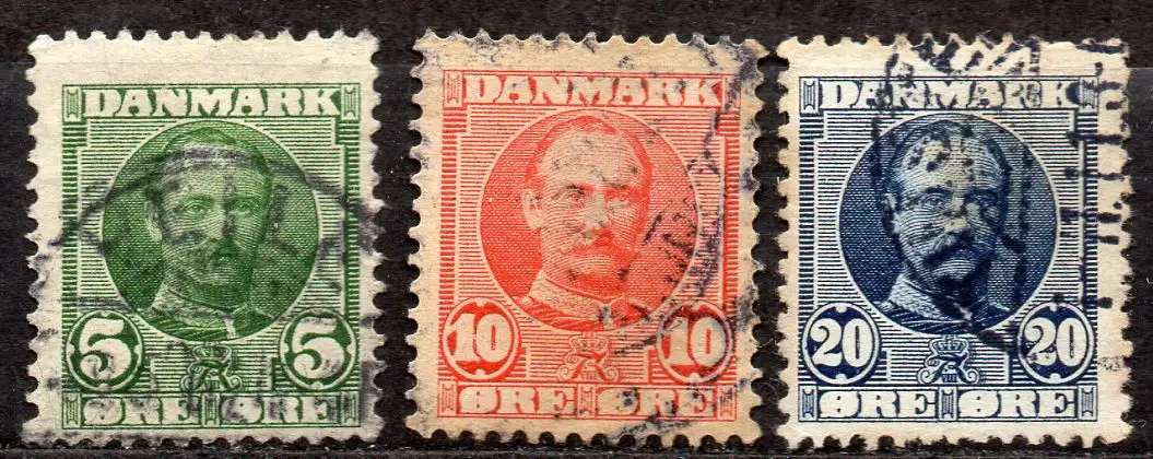 Dänemark, Mi-Nr. 53, 54 + 55 gest., König Frederik VIII.