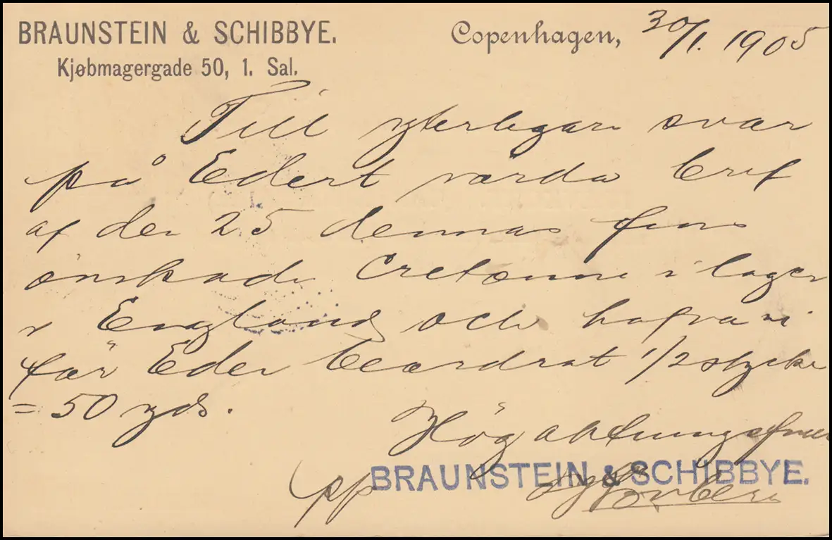Auslandspostkarte aus Kopenhagen nach HELSINKI / HELSINGFORS 2.2.05. Rückseitig privater Zudruck Braunstein & Schibbye