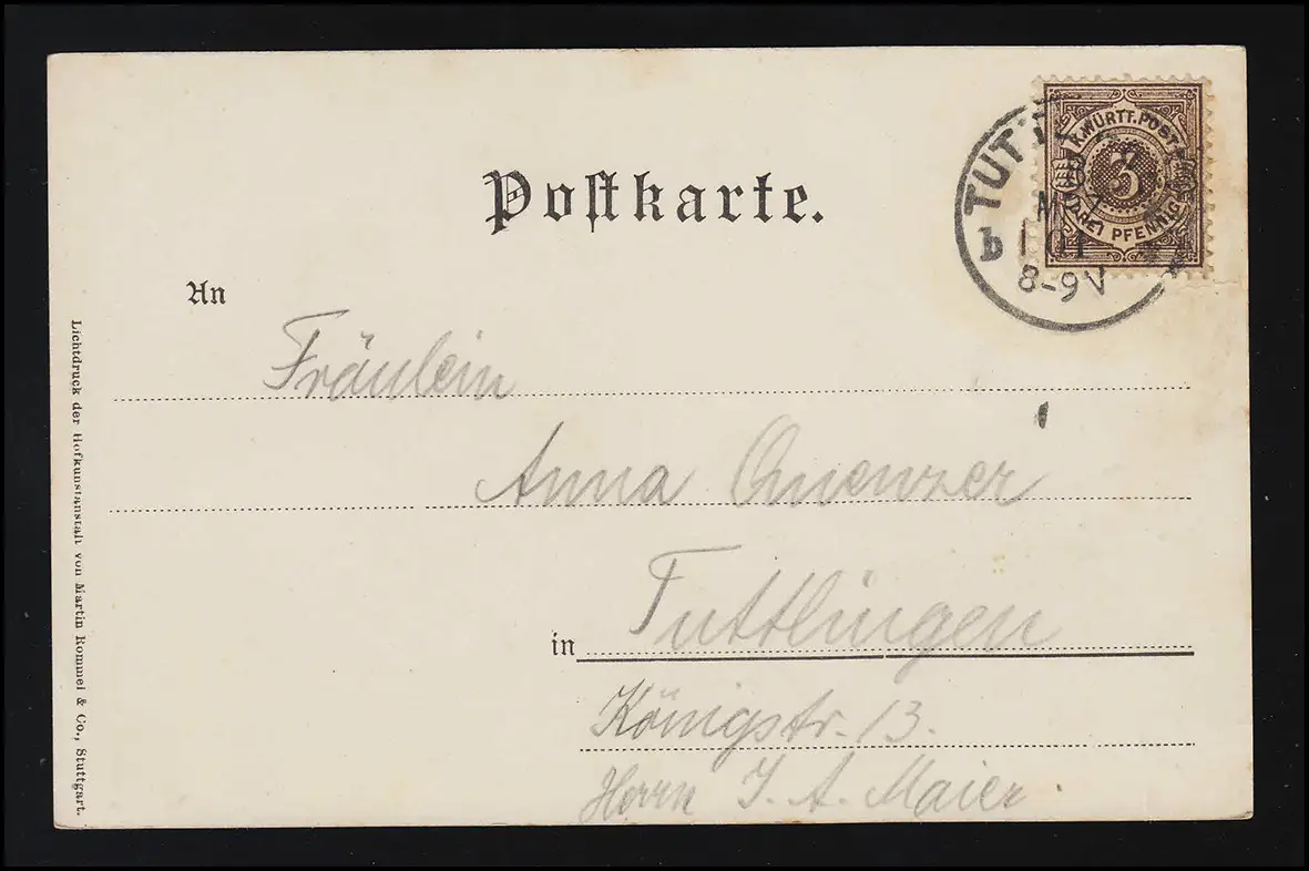 Lichtdruck der Hofkunstanstalt von Martin Rommel & Co, Stuttgart, Verlag v. M. Hendschel, Frankfurt a.M. Motiv: Liebendes Paar sitzt auf einer Bergspitze, der Mann hält die Frau im Arm und hebt den Hut zu einem Gruß an Gott. Zeichnungen und Verse von Albert Hendschel.