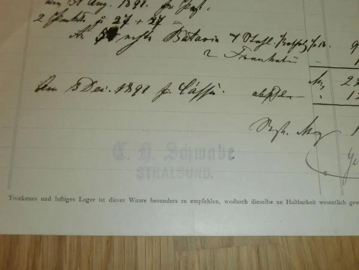 Dampf-Sensenschärfer-Fabrik in Stralsund , 1893 , C.H. Schwabe , alte Rechnung , Mecklenburg !!