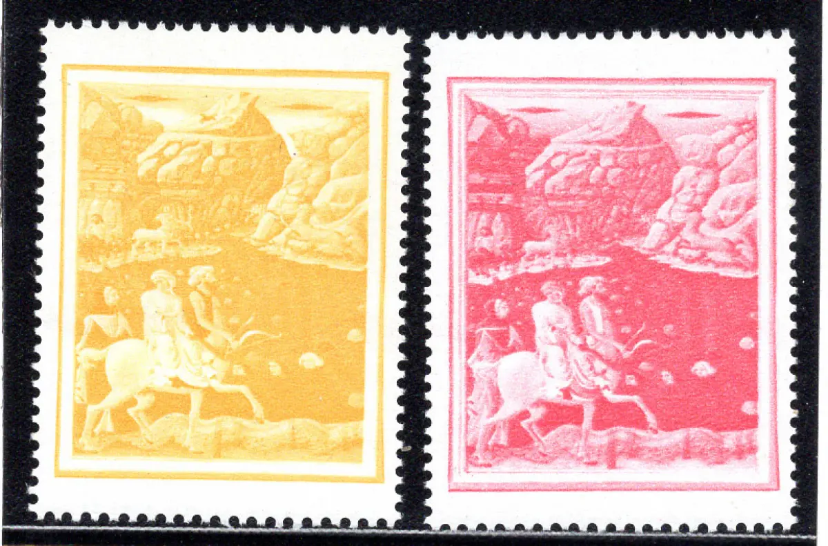 Dante - Serie von fünf Sorten Farbprüfungen Vollgummi - MHN - - Dante - Serie von fünf vom Polygraph vorbereiteten Farbprüfungen zum Testen der neuen Goebel 4-Farben-Rotationsmaschinen (Kat. Unified Nr. 13 + a, b, c, d) - Selten zusammen - Kat. euro 970 Cod. 673/14