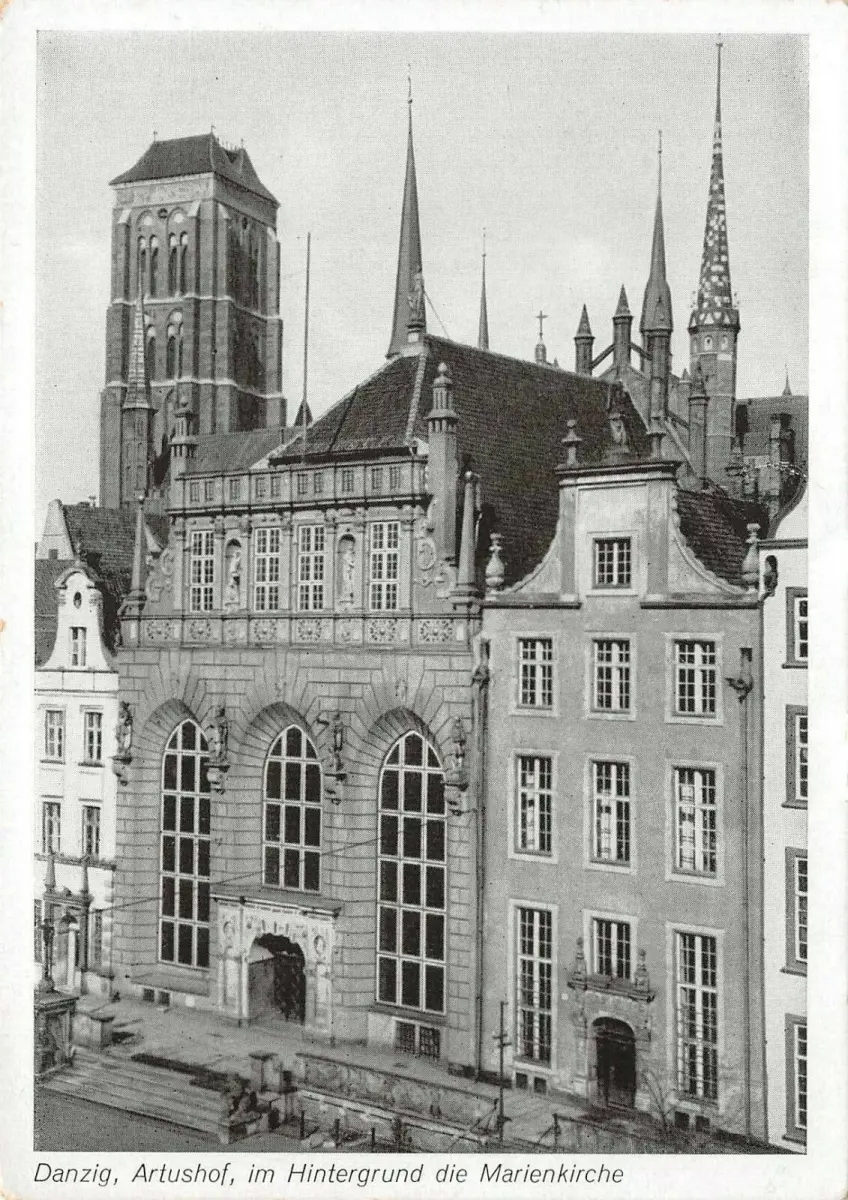 Danzig Artushof im Hintergrund die Marienkirche Postkarte AK