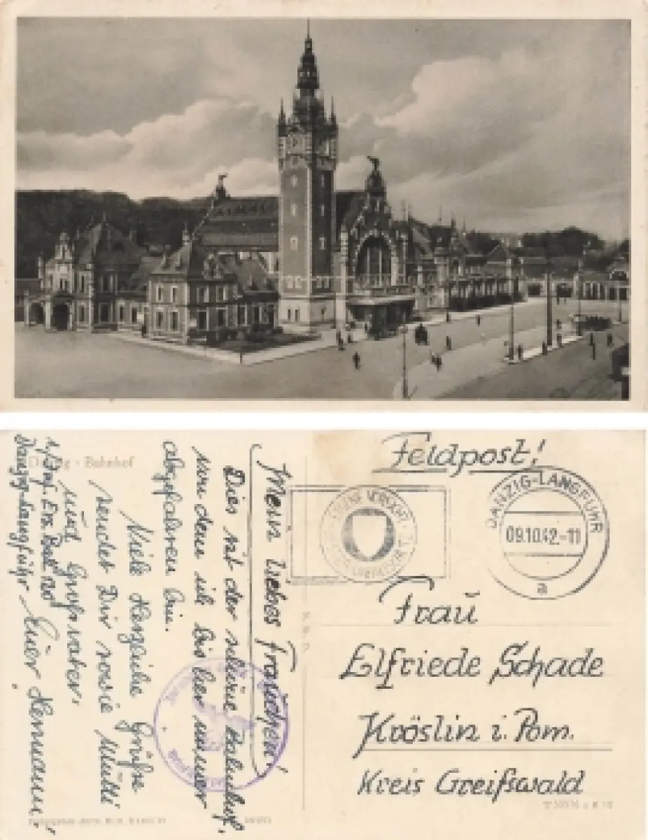 Danzig Bahnhof Feldpost Infanterie Ersatz Bataillon 120 Danzig Langfuhr 9.10.1942