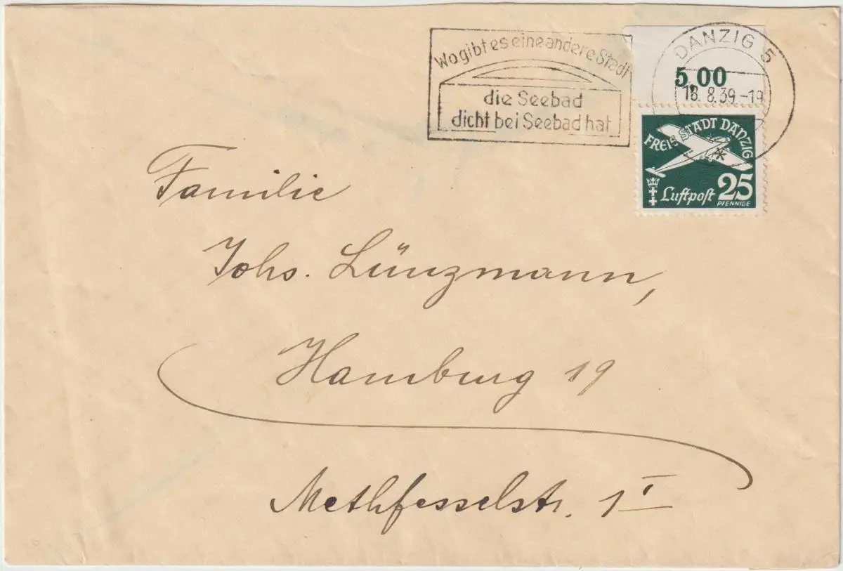 Danzig Bedarfsbrief mit EF 300 (Flugpost)