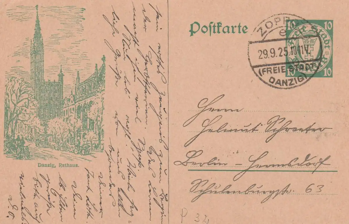 Danzig: Bildpostkarte P31 / Rathaus, bedarfsgebraucht