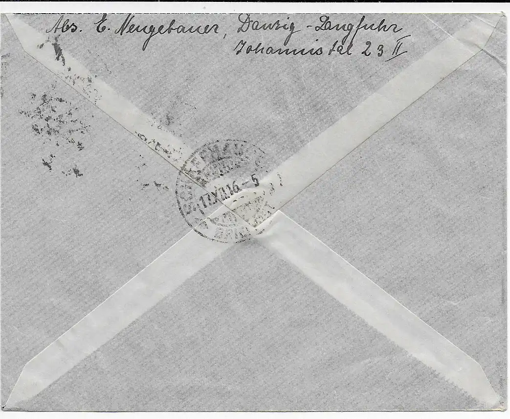 Danzig: Brief nach Schaffhausen 1916 mit Zensur Danzig