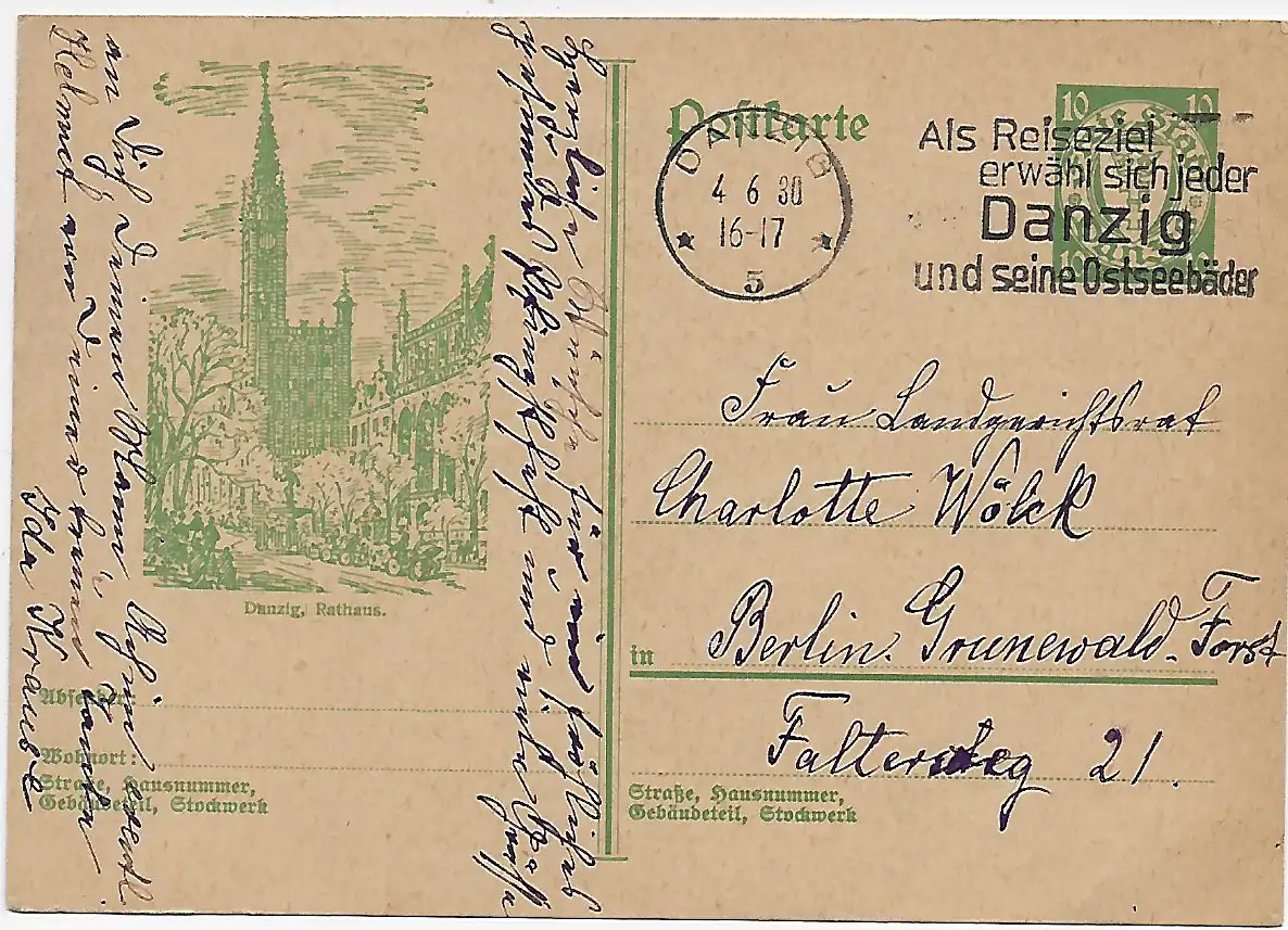 Danzig: Ganzsache 1930: Werbestempel P45 nach Berlin