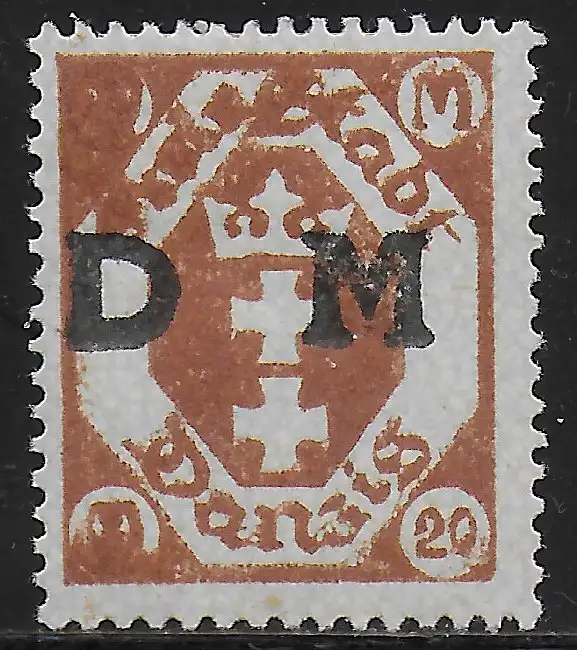 Danzig: Wertziffer verschwommen, farbübersätigter Druck, Falz